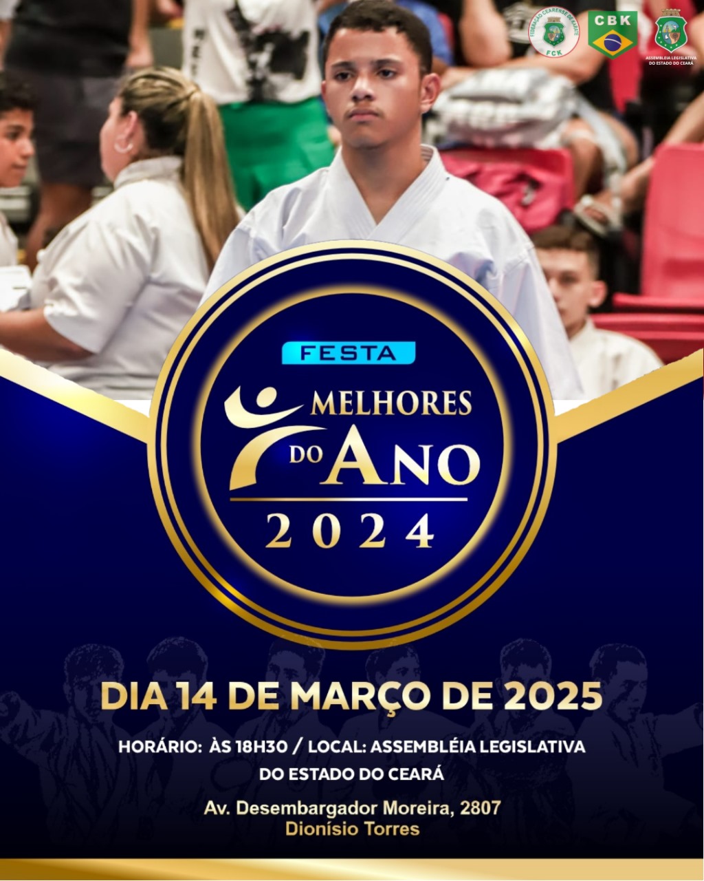 O atleta de Karatê Davi Rosa Santos da Academia Dojo Sam, do Mestre Duda Sam de Brejo Santo foi convidado para participar da Festa Melhores do Ano de 2024 da Assembleia Legislativa do Estado do Ceara, que acontecera, neste dia 14 de Março de 2025 as 18:30 na Sede da Alece, na Avenida Desembargador Moreira 2807, bairro Dionísio Torres na Capital Fortaleza.