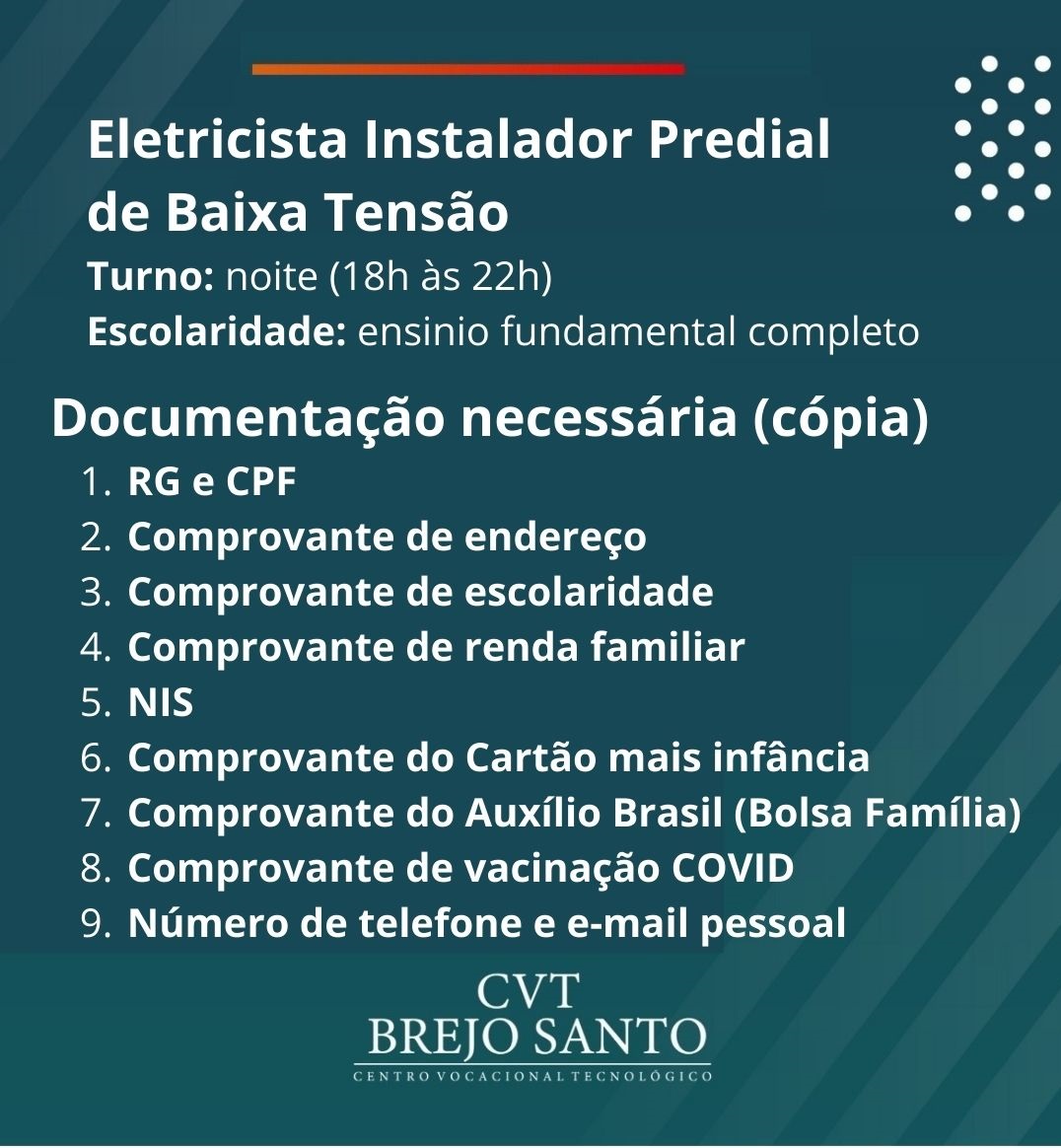 Faça já sua inscrição presencialmente na Sede do CVT em Brejo Santo-CE.