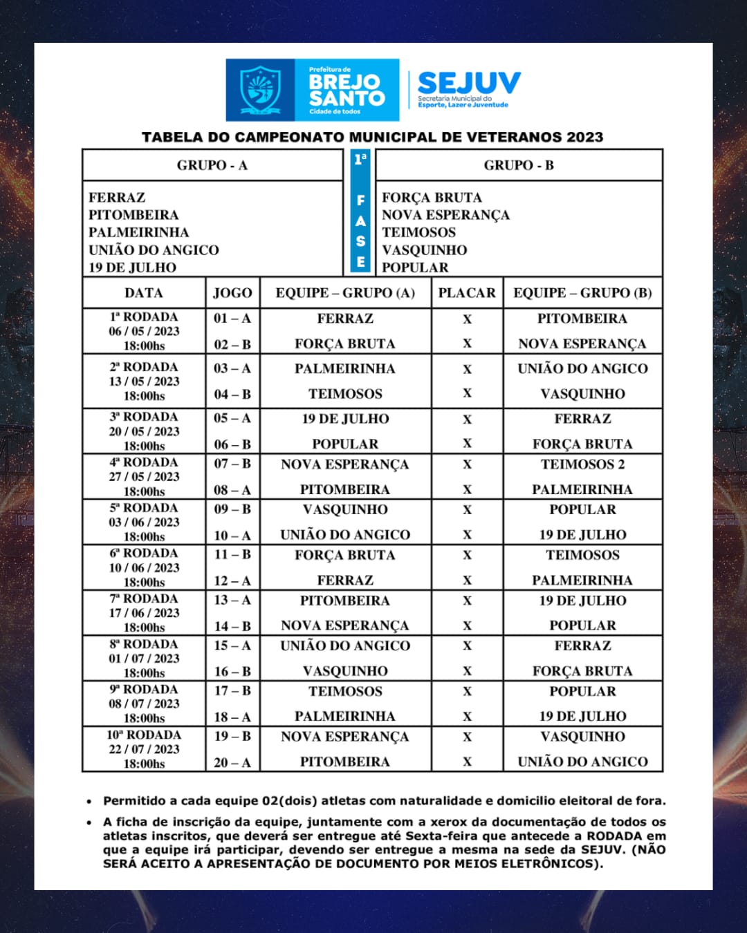 Participe e prestigie os atletas veteranos de Brejo Santo.