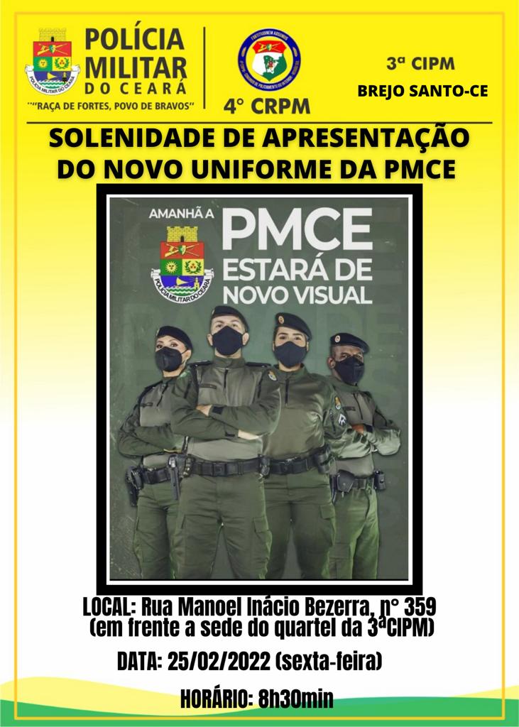 O Comandante da 3ª CIPM-4ºCRPM, Brejo Santo-CE, Capitão Marcos Souza, apresentara a população de Brejo Santo/CE, e autoridades  o Novo Uniforme da PMCE nesta sexta-feira dia 25 de Fevereiro.